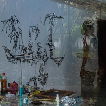 interim_ was inspired by makeshift ways and a desire to build a format of exhibition from the ground up. The idea was conceived out of a notion of temporality, with the intention being to treat each exhibition as an "interim life" and later take form as a nomadic project.
